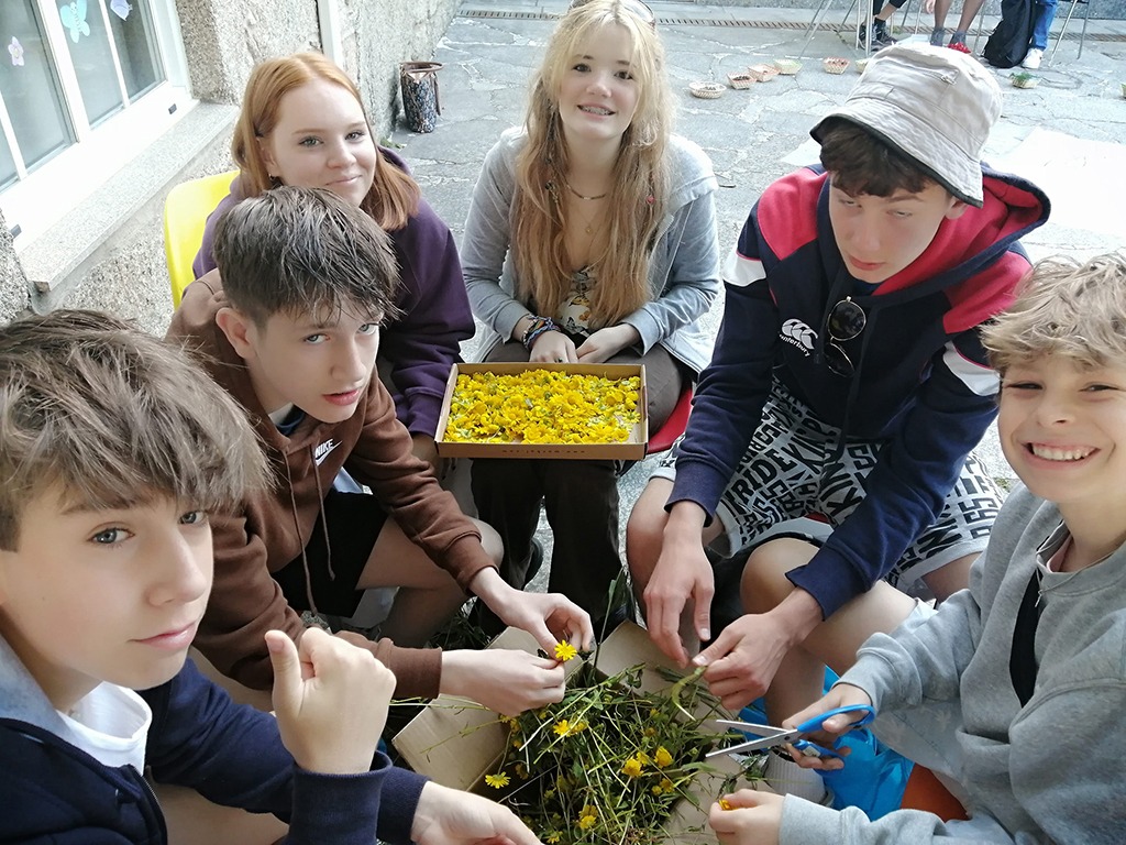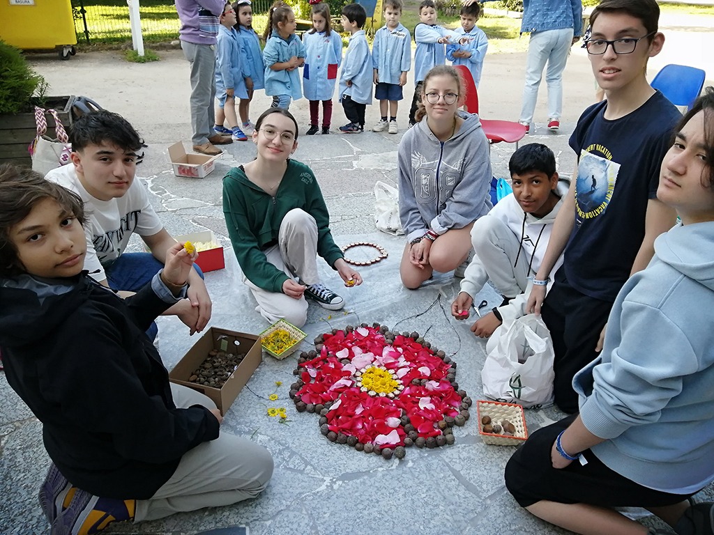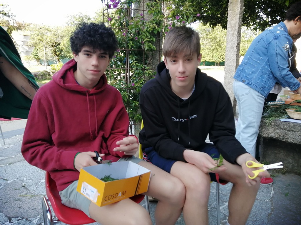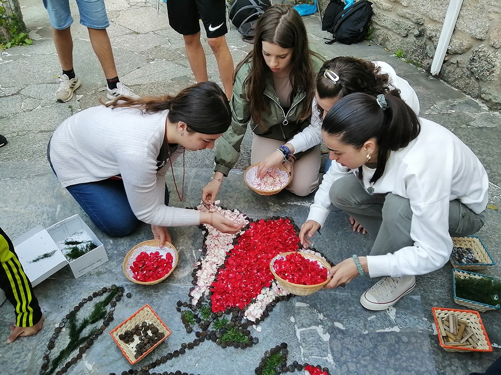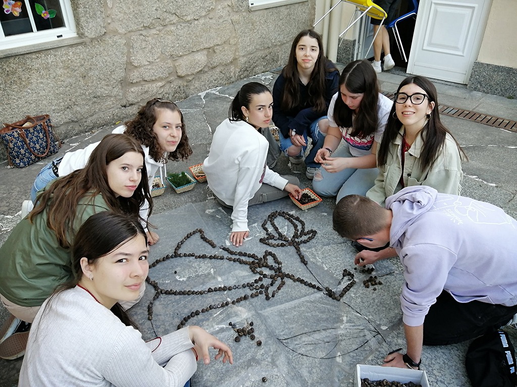 Para acercar a nuestro alumnado a esta tradición común a Ponteareas y Bruselas preparamos una actividad en la que confeccionaron varios tapices a pequeña escala. Primero estuvieron aprendiendo sobre el evento visualizando vídeos de la escuela de alfombristas. Después, ayudados y guiados por miembros de la asociación y por personal del concello de Ponteareas, formaron equipos, prepararon el material y se pusieron manos a la obra. Los chicos y chicas de Galicia les iban mostrando a sus compañeros belgas el nombre en gallego de las flores y hojas más utilizadas. Fue una gran experiencia y les gustó mucho.